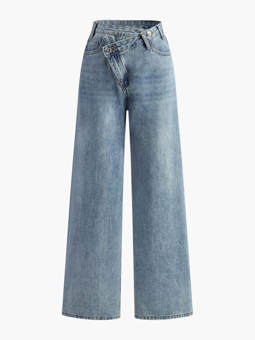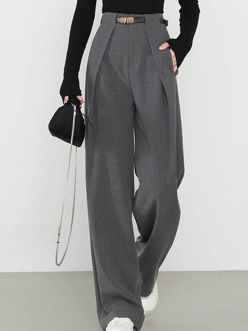 Asymmetrical Layer Button Wide Leg Dress Pants