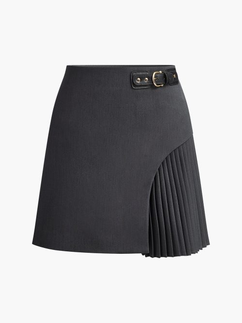 Asymmetric Patchwork Faux Leather Chiffon Pleated Maxi Skirt